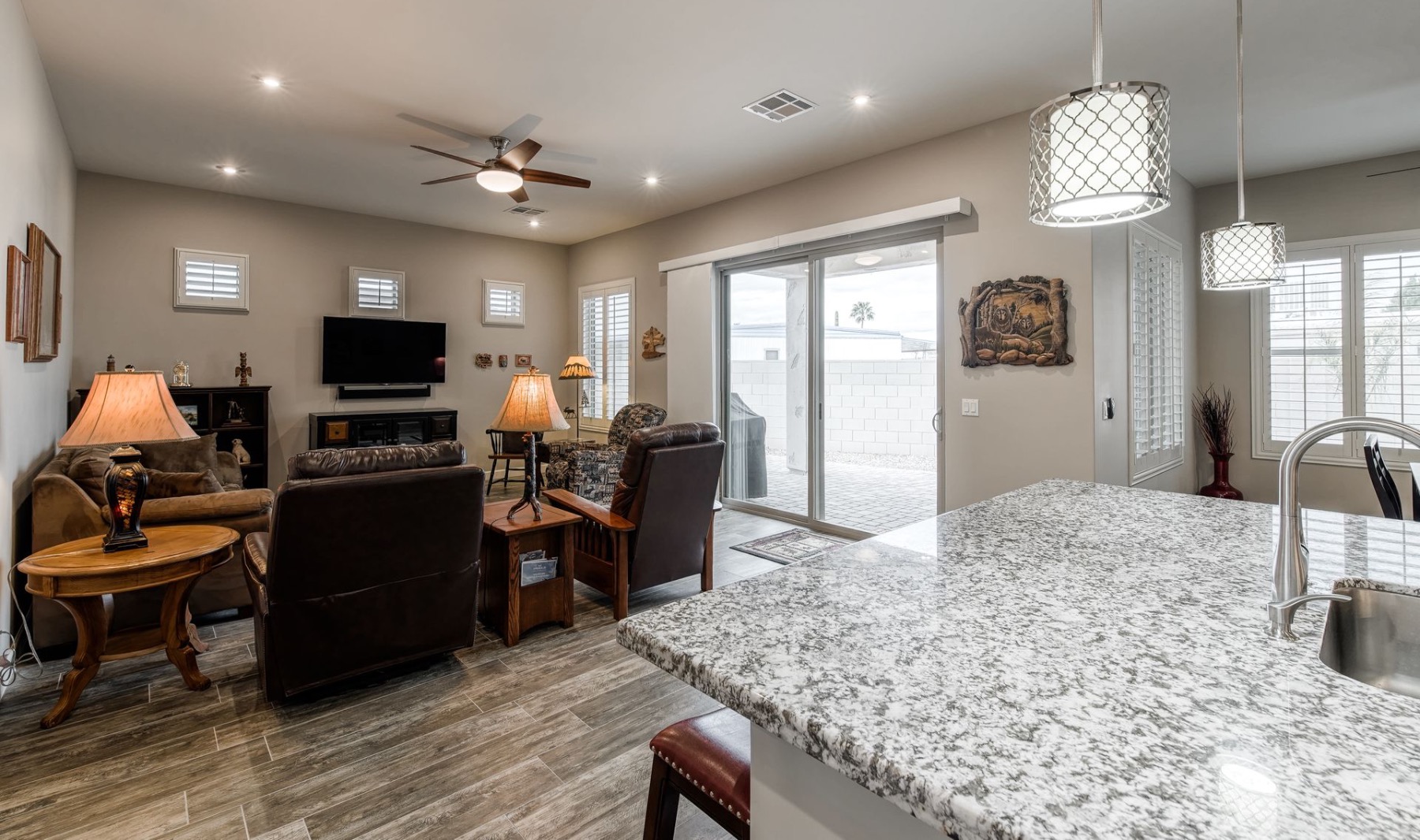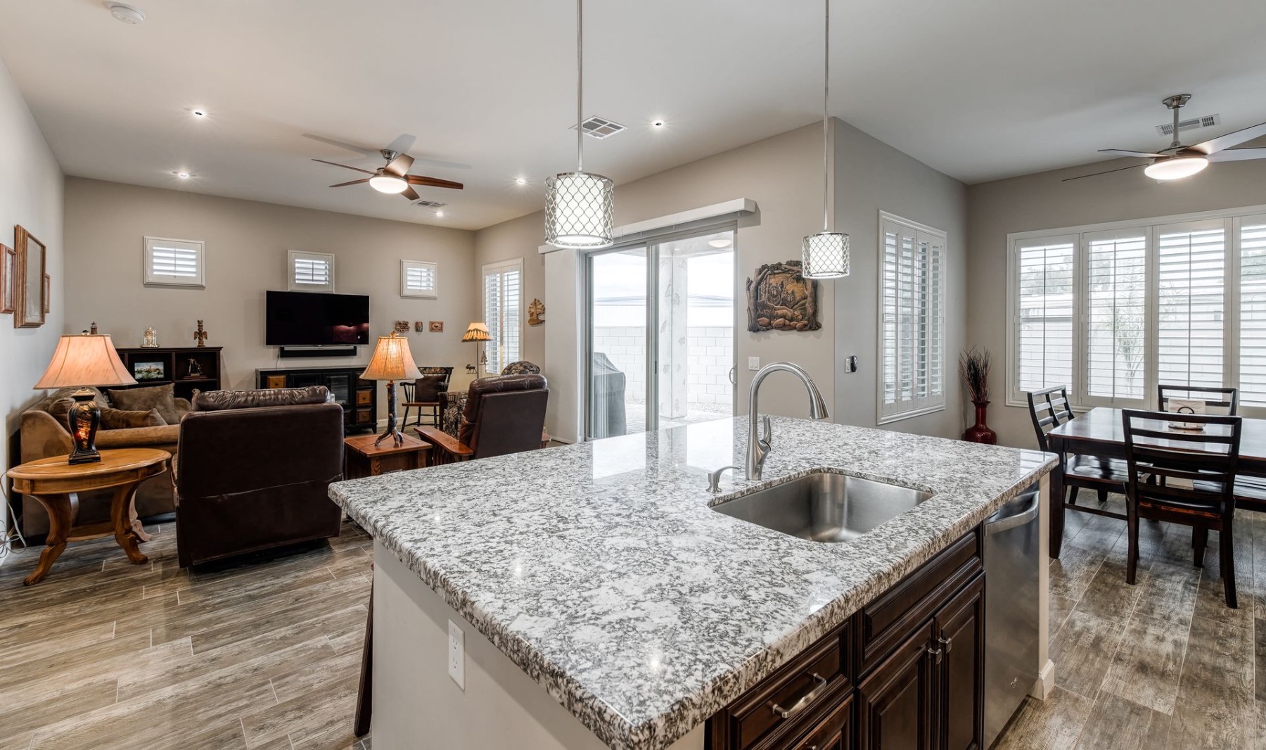 Welcome to "The Lite House" one of the finest homes in Mesa. Immediately you'll notice impeccable curb appeal, professional landscaping, and ideal orientation. Walk in and enjoy a grand entry with an inviting open floorpan. You'll notice right away is the better than new with NO expenses spared here. Upgrades throughout, designer floors, paint, finishes, shutters, shades, 42" staggered cabinets, DREAM oversized kitchen, granite, crown molding, under cabinet lighting, tankless h20 heater, built in shower bench, everything you want in a home that rarely is found in a new construction home AND MORE! All of this with a very easy care layout perfect for entertaining as well. This is truly a MUST SEE.